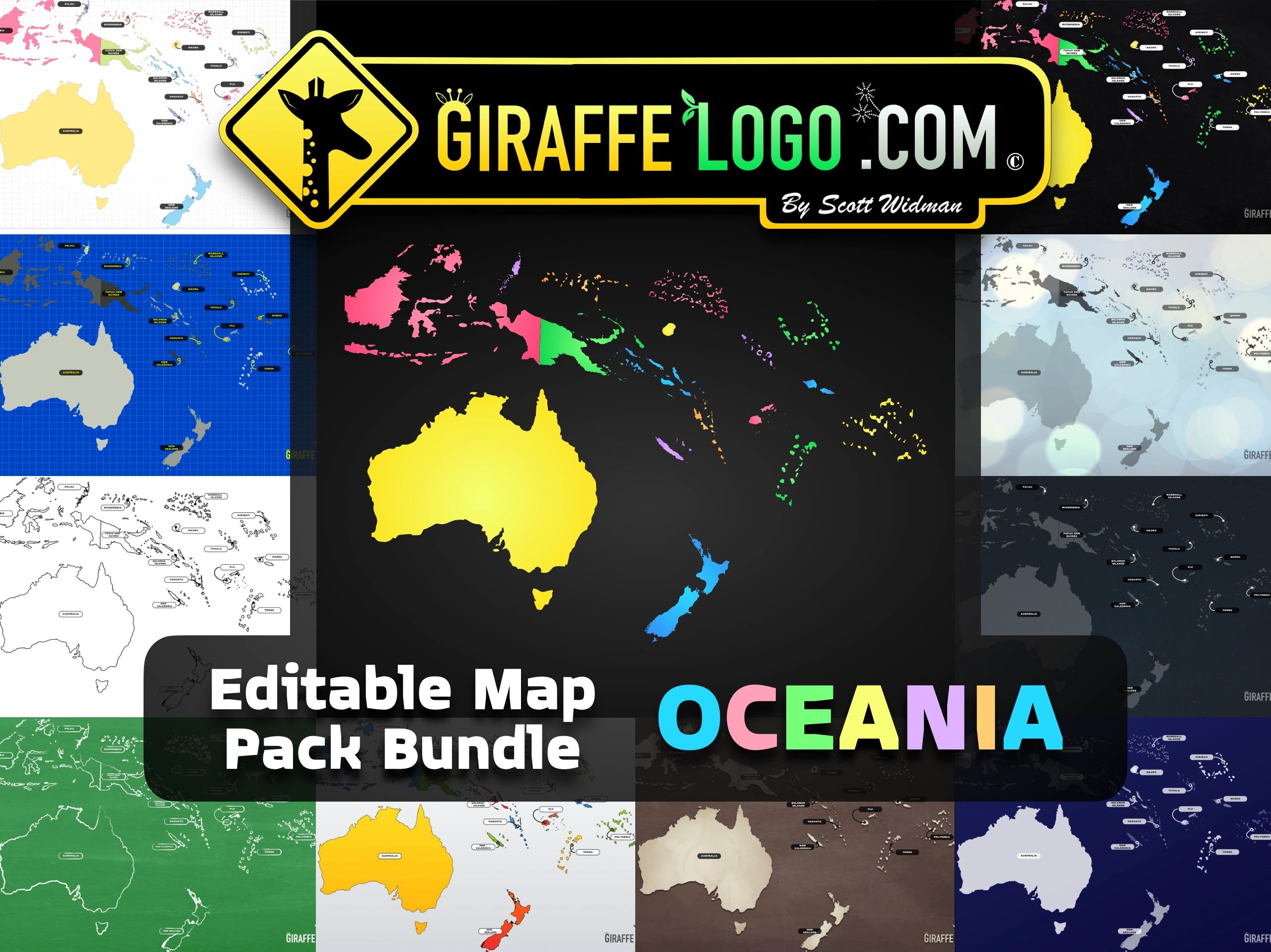 MAP PACK = UP TO DATE & Includes ALL 14 countries in Oceania (according to the UN) + additional regions.