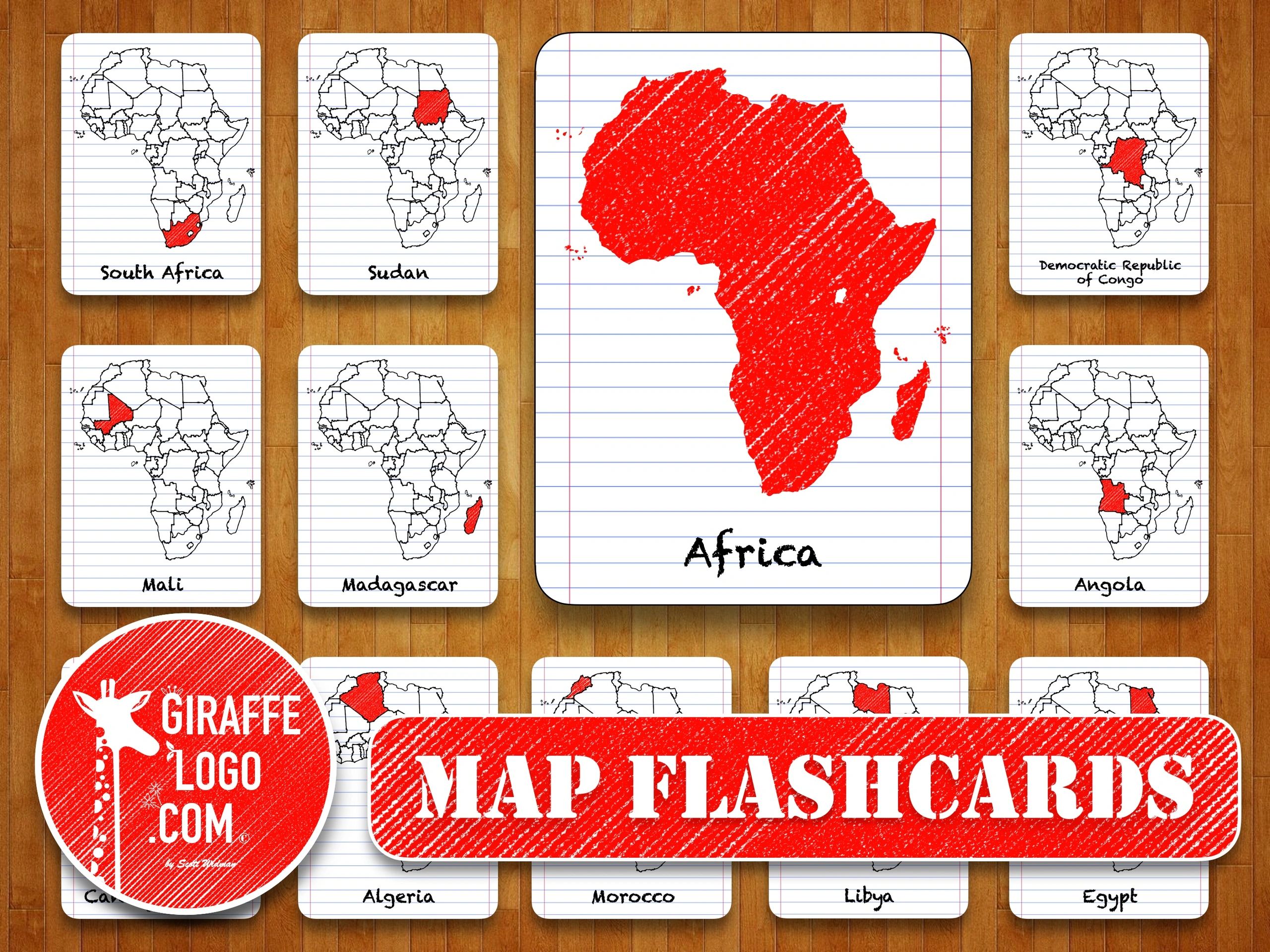 AFRICA Map Flashcard Set Includes x171 Flashcards of ALL 57 African Countries + Locations in both Printable & Digital formats. Flashcards are easy to use & perfect for a quick print & go or for creating fun interactive resources like geography games, activities, quizzes, presentations, worksheets, & more!