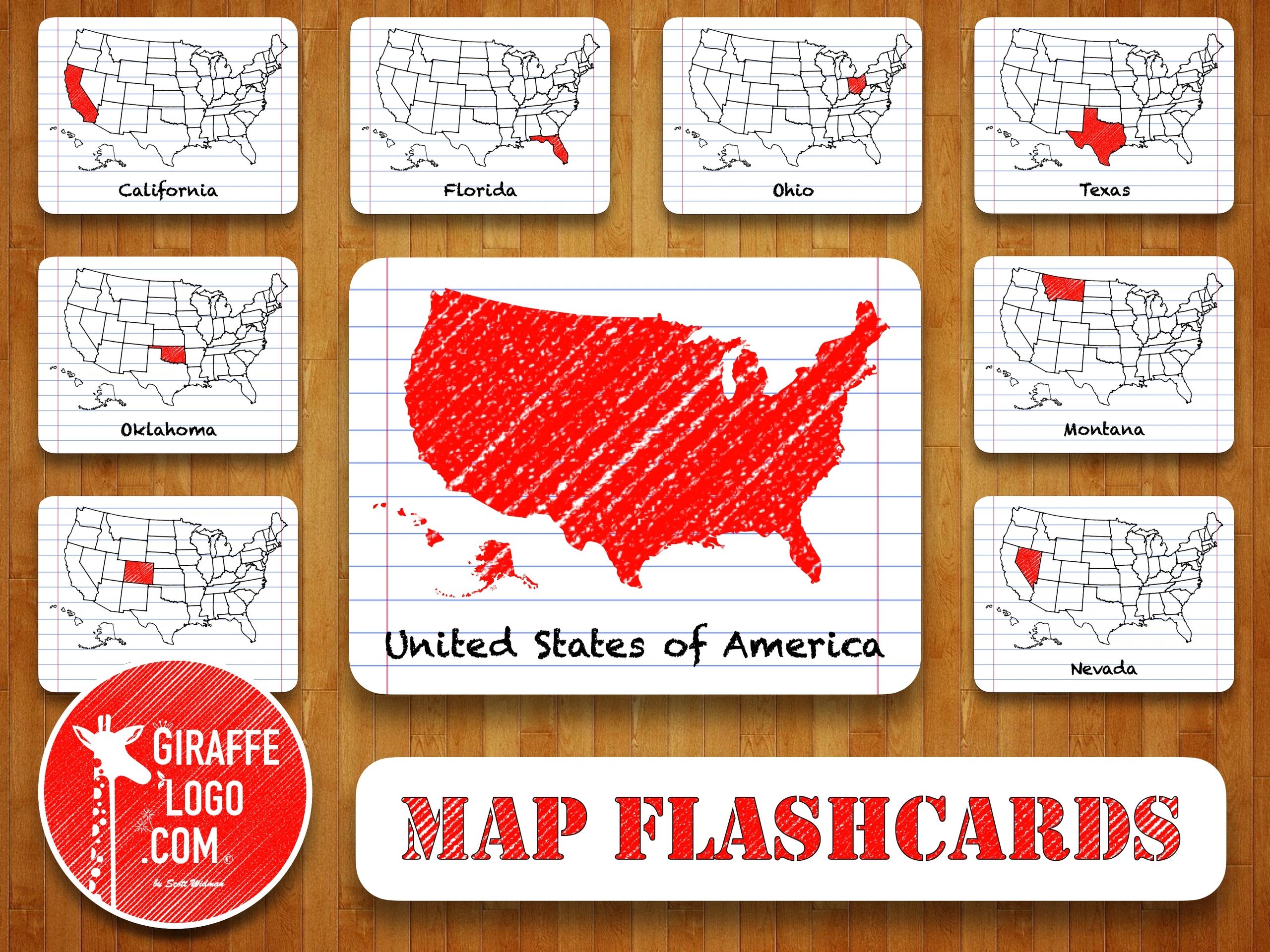 USA Map Flashcard Set Includes x156 Flashcards of ALL 50 US States in both Printable& Digital formats. Flashcards are easy to use & perfect for a quick print & go or for creating fun interactive resources like geography games, activities, quizzes, presentations, worksheets, & more!